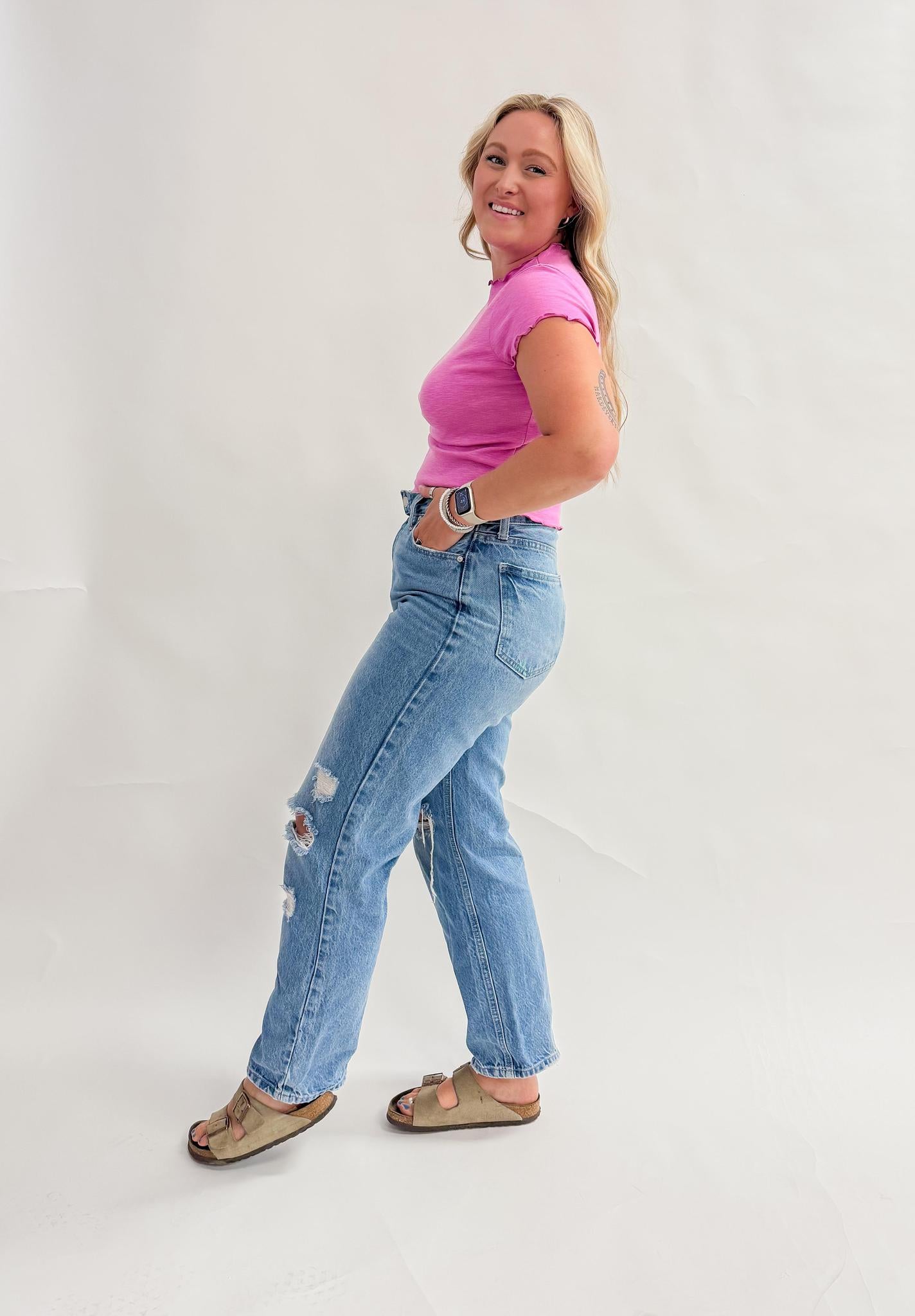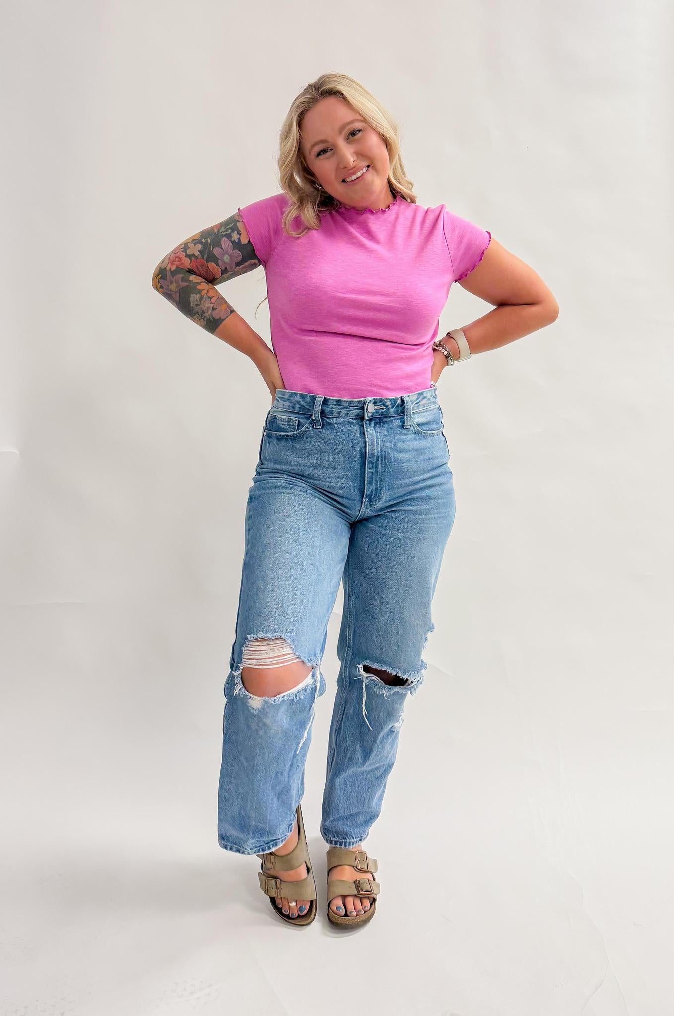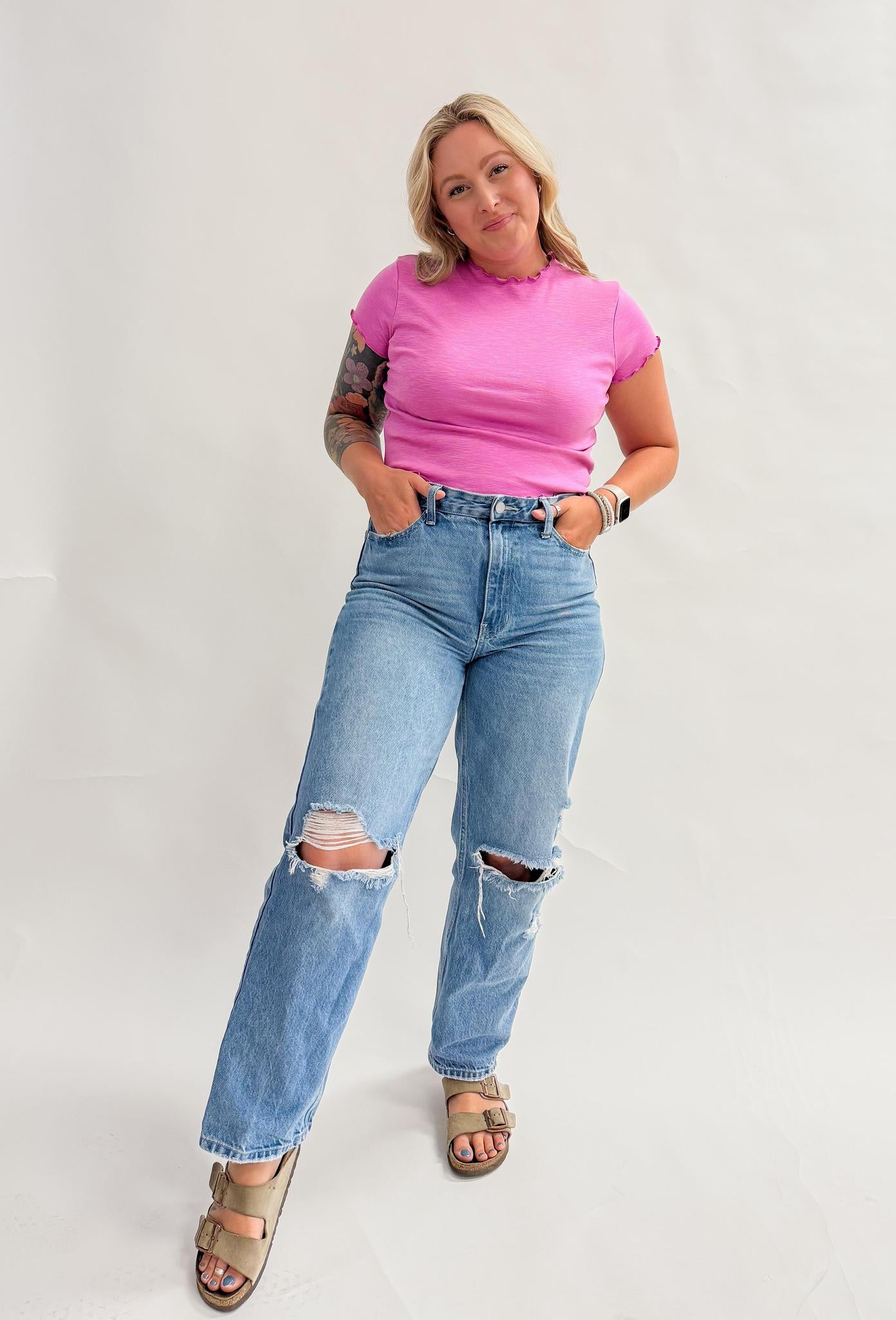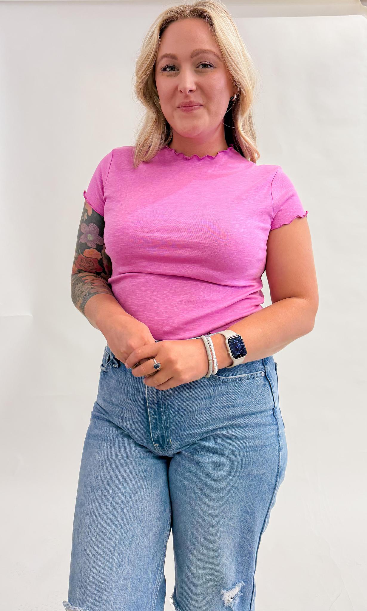 COTTON MODAL SLUB LETTUCE TRIMMED CROPPED TEE