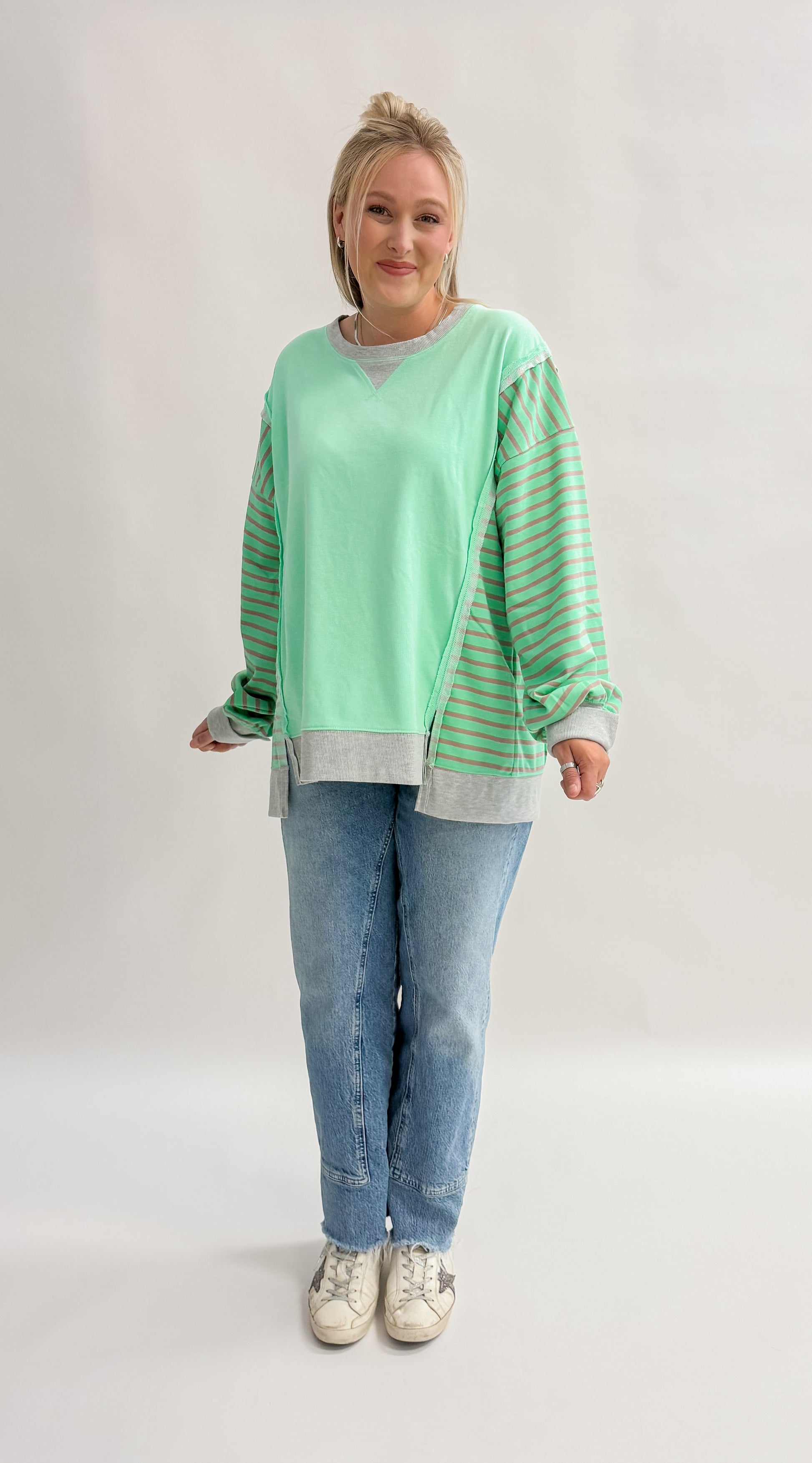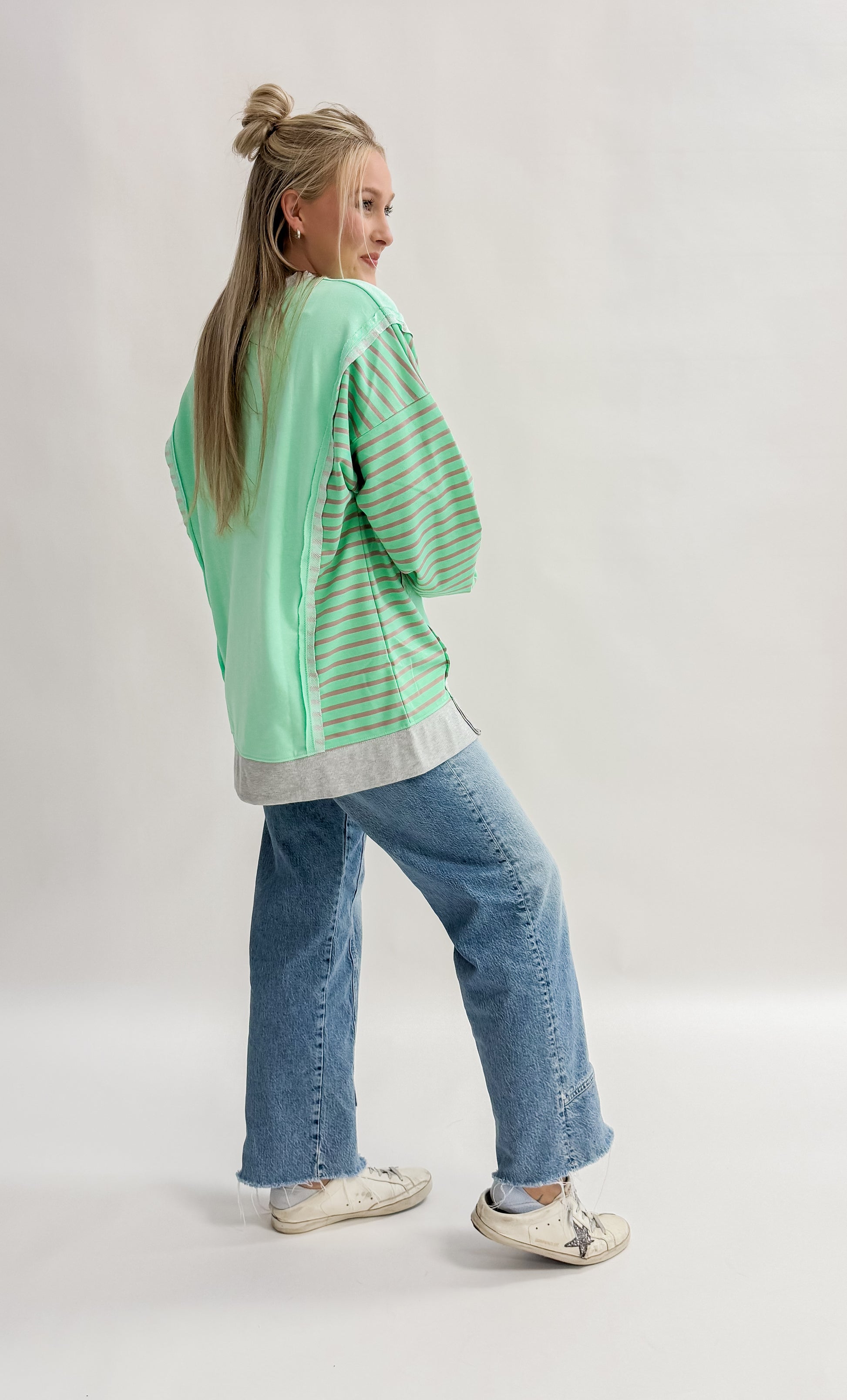 Introducing the Driftwood Ln. Pullover—a striped, oversized staple built for daily comfort and effortless style.