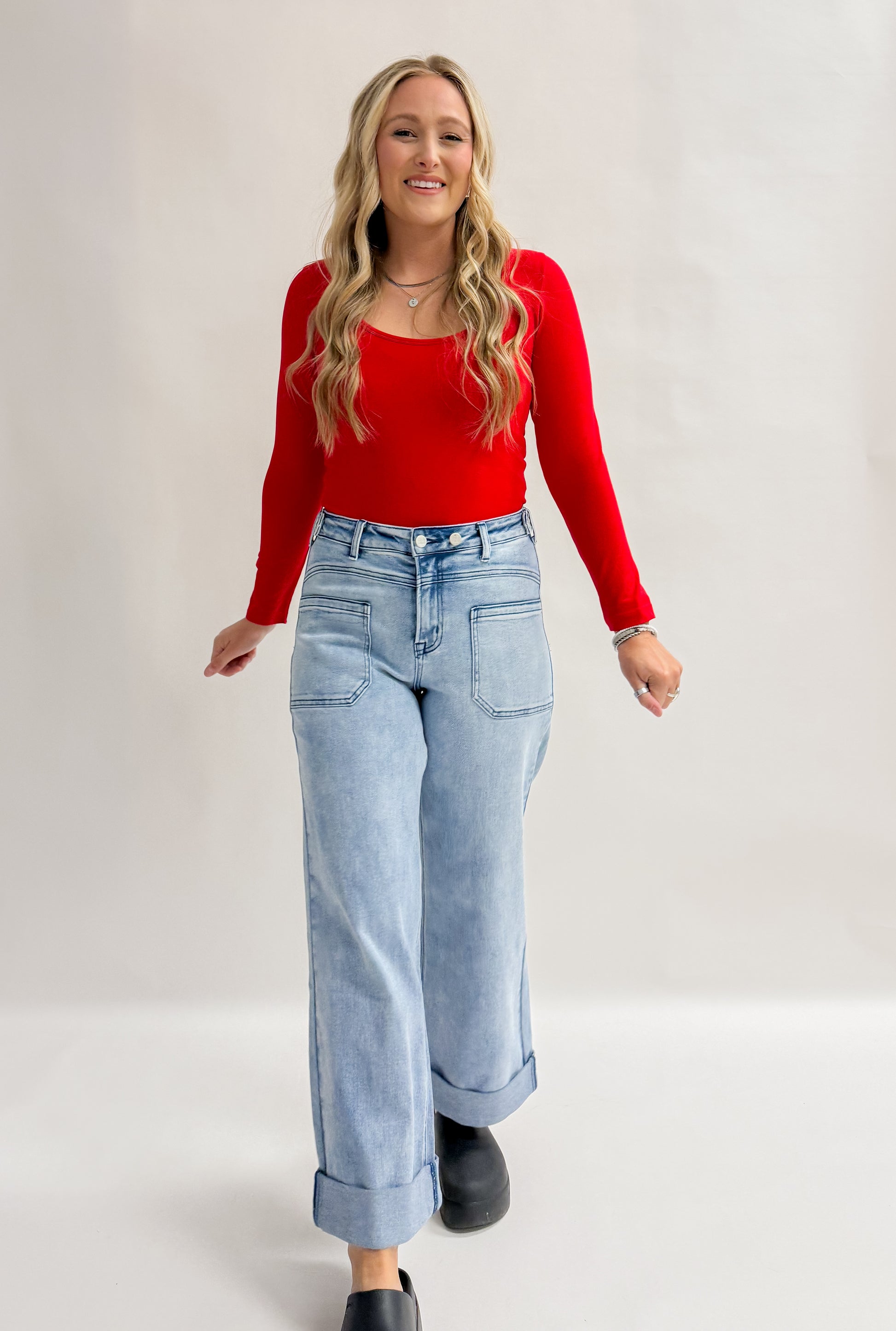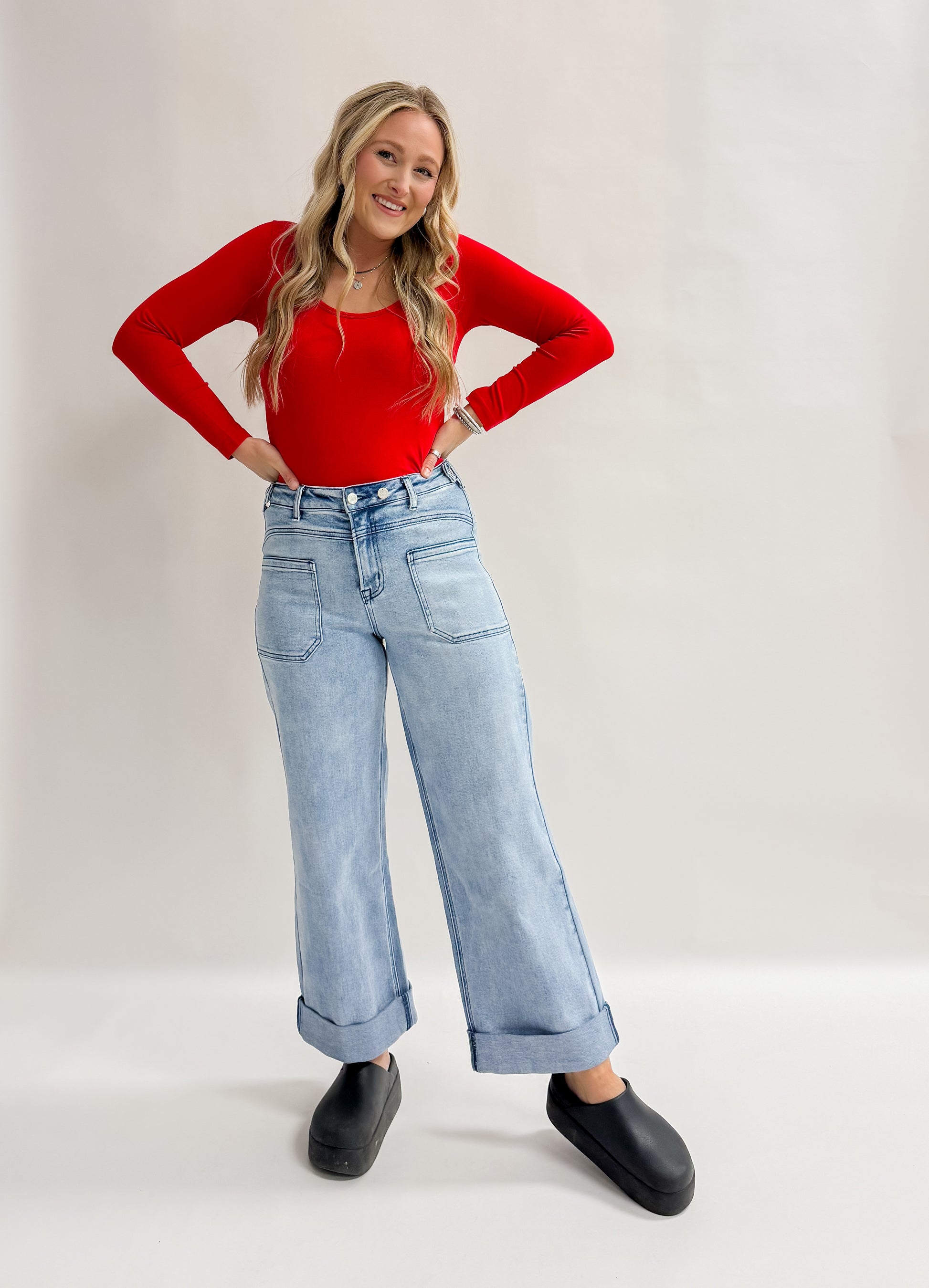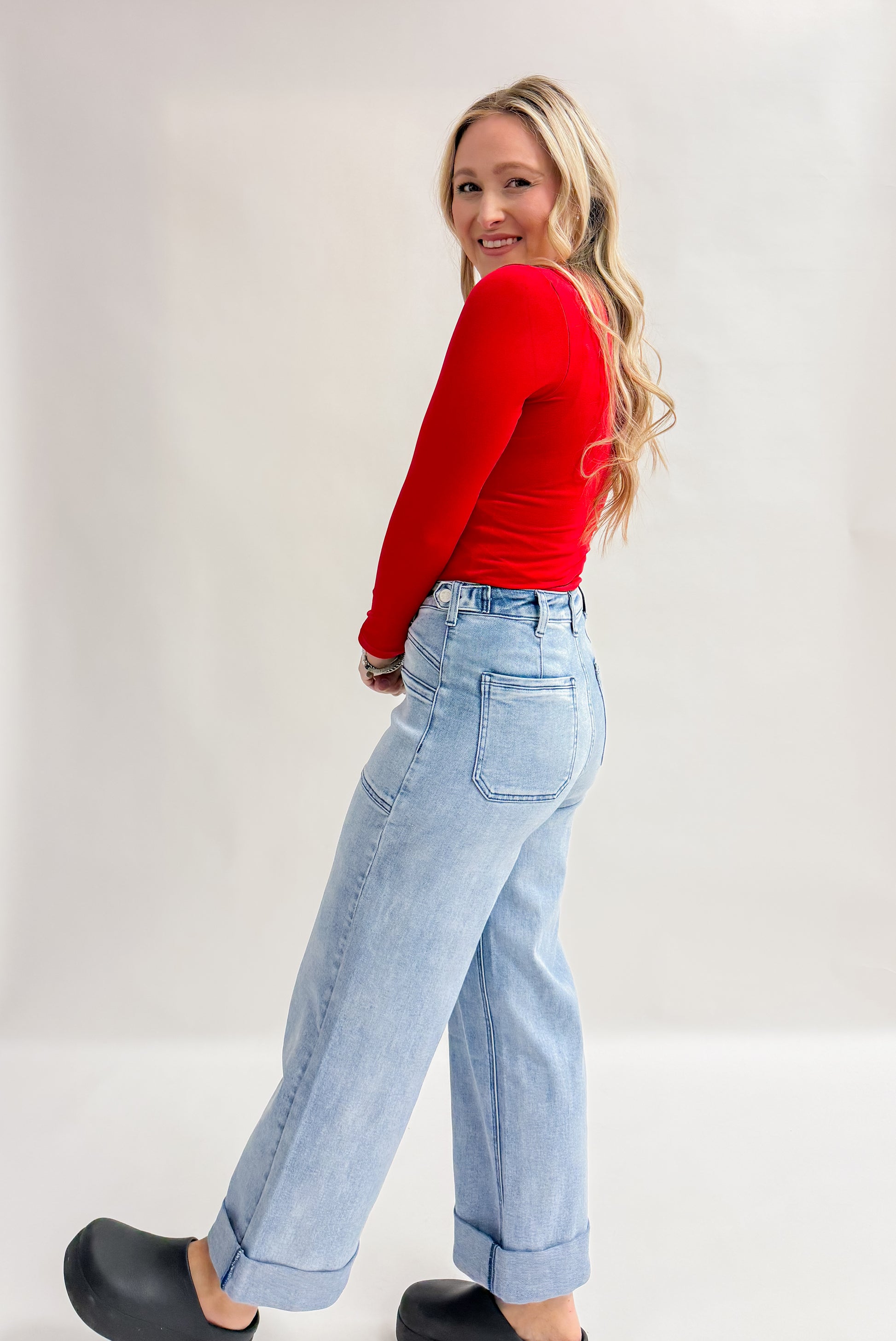 The E Wilkshire Rd. Jean brings everyday versatility to your wardrobe. The cuffed bottom adds a contemporary finish, while the straight-leg cut offers a flattering, timeless shape. Square front pockets provide practical storage without bulk, making these jeans a dependable choice for work, weekends, and everything in between.