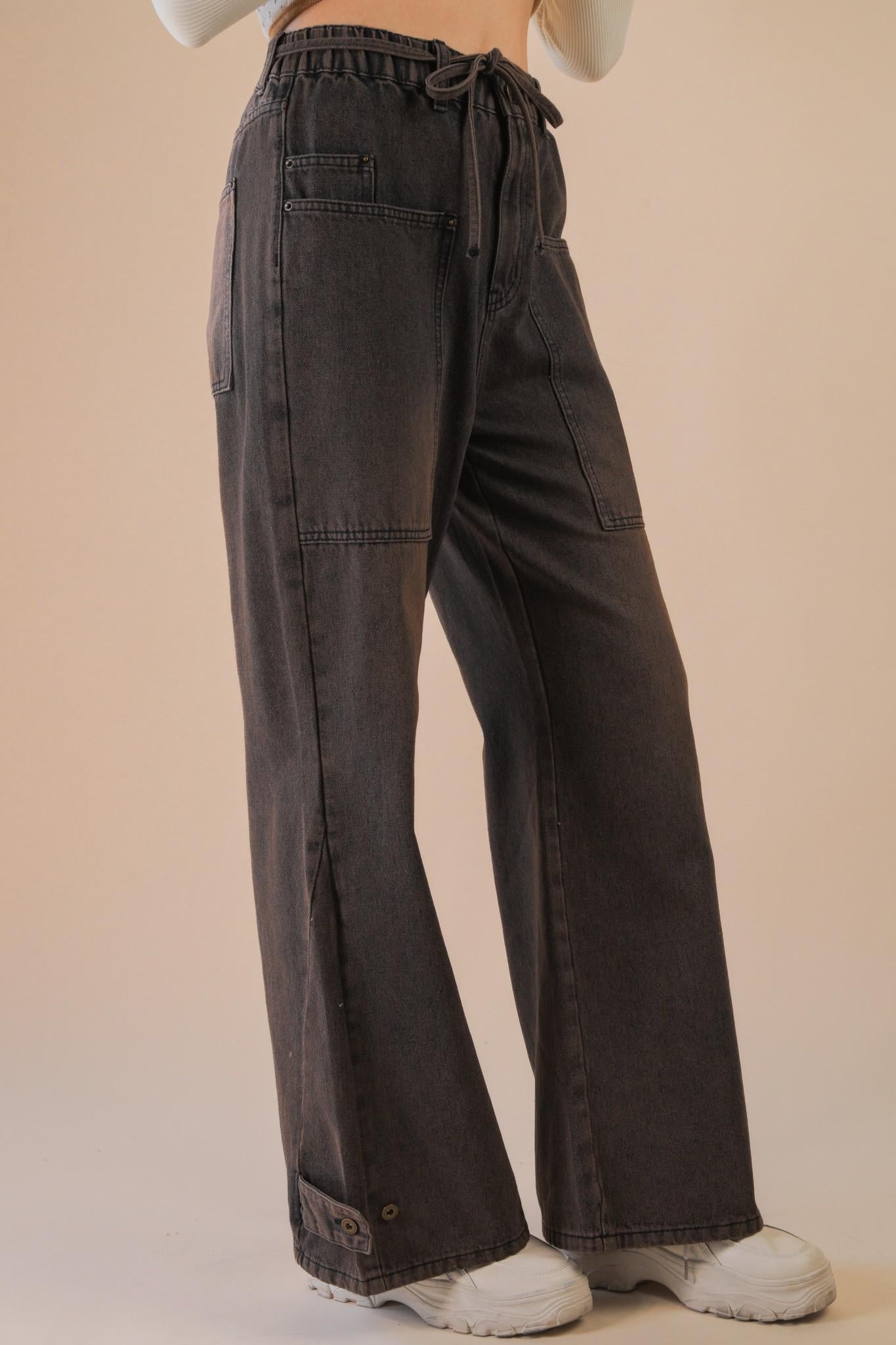 - Wide-leg design in washed denim