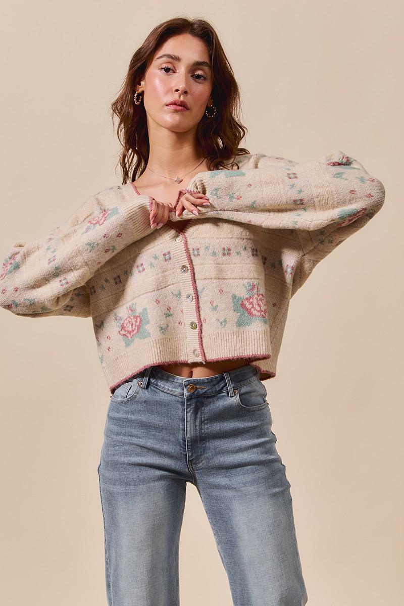 Embrace timeless charm with the Elk Rd. Cardigan, a floral-patterned long sleeve sweater cardigan that brings vintage elegance to every layer of your look.
