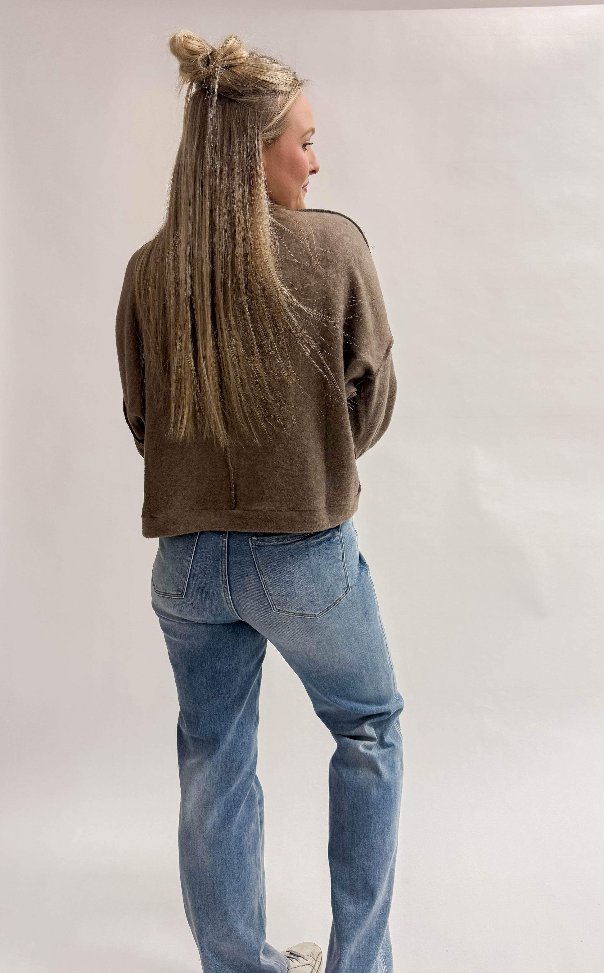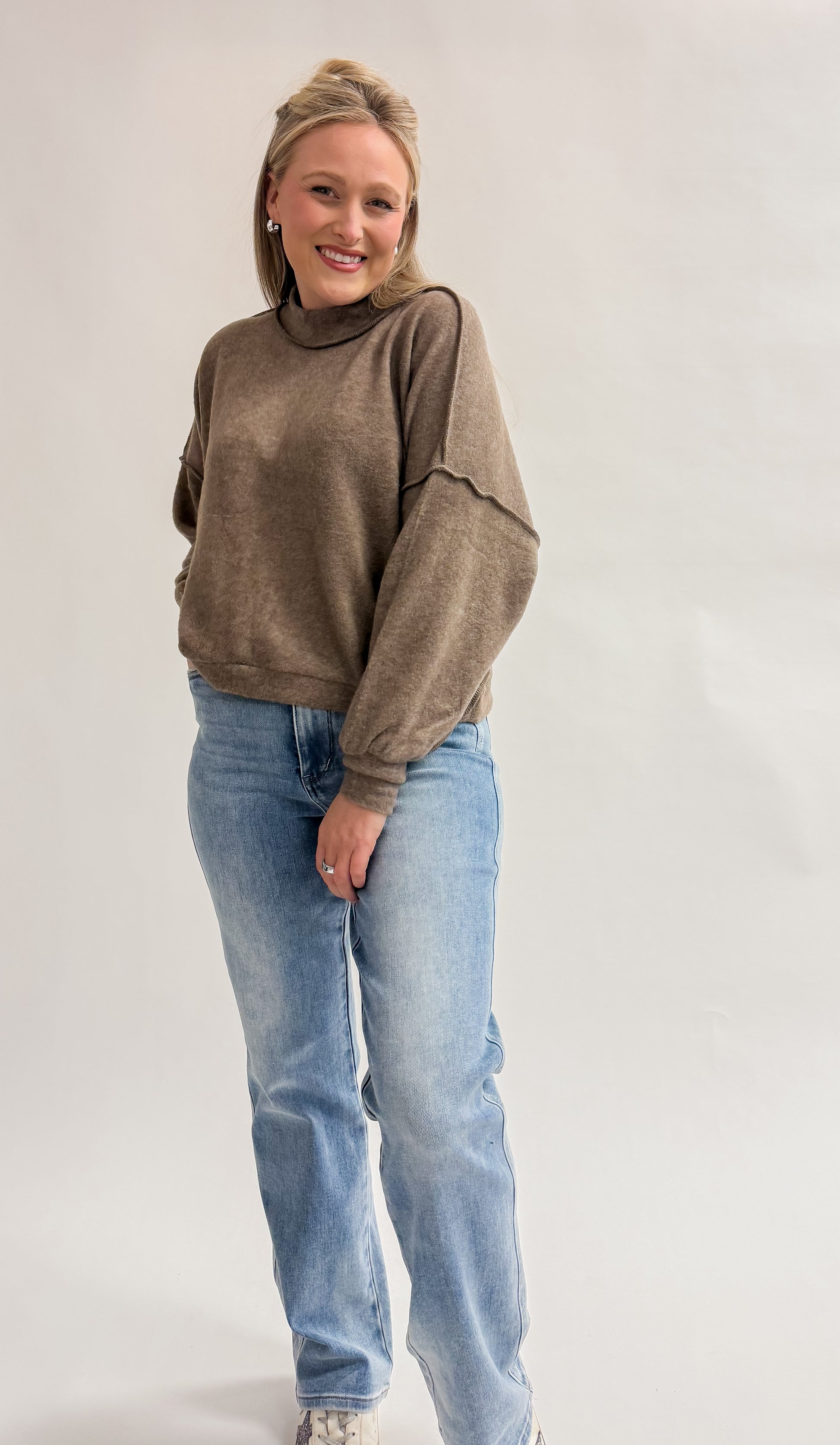 Wrap yourself in effortless elegance with the Farragut Rd. Top — a soft brown mockneck long sleeve that instantly polishes casual outfits into something refined.
