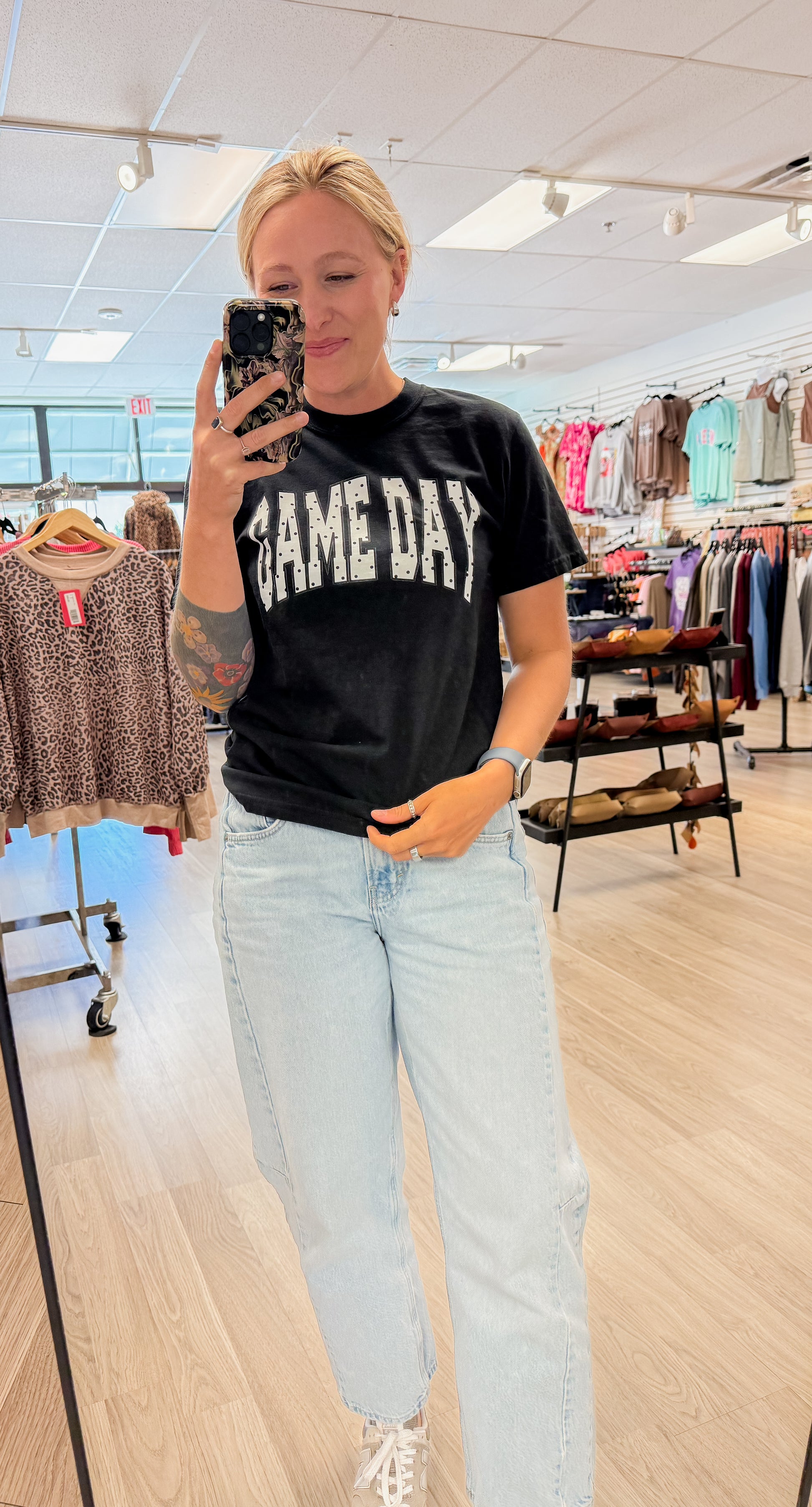 Score a win in style with the Game Day Polka Dot Graphic Tee—where game-time energy meets playful pattern.