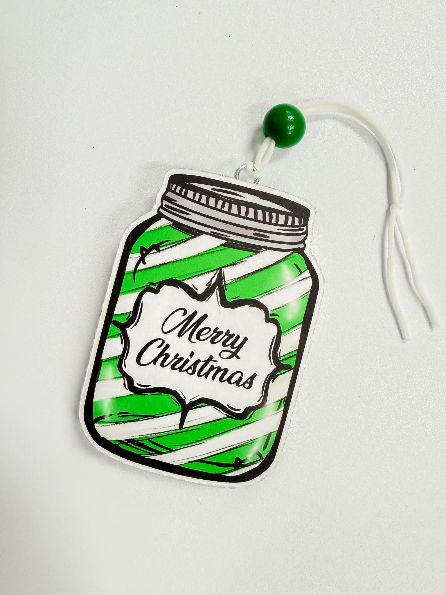Elevate your holiday ambiance with the Merry Mason Freshie, a festive aromatic accent that blends vibrant color with inviting fragrance.