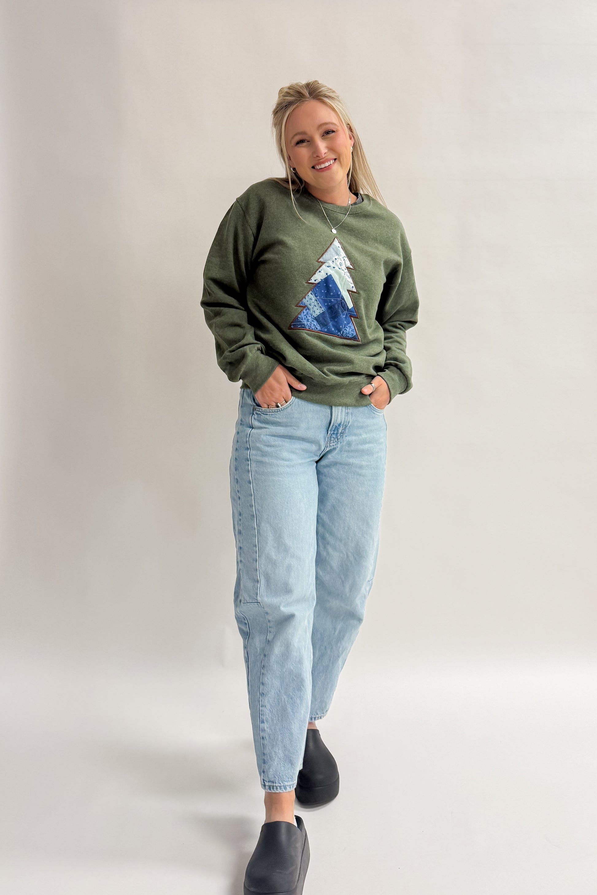 Add the Quilted Christmas Tree Crewneck to your cart now and celebrate the season in warm, stylish fashion.