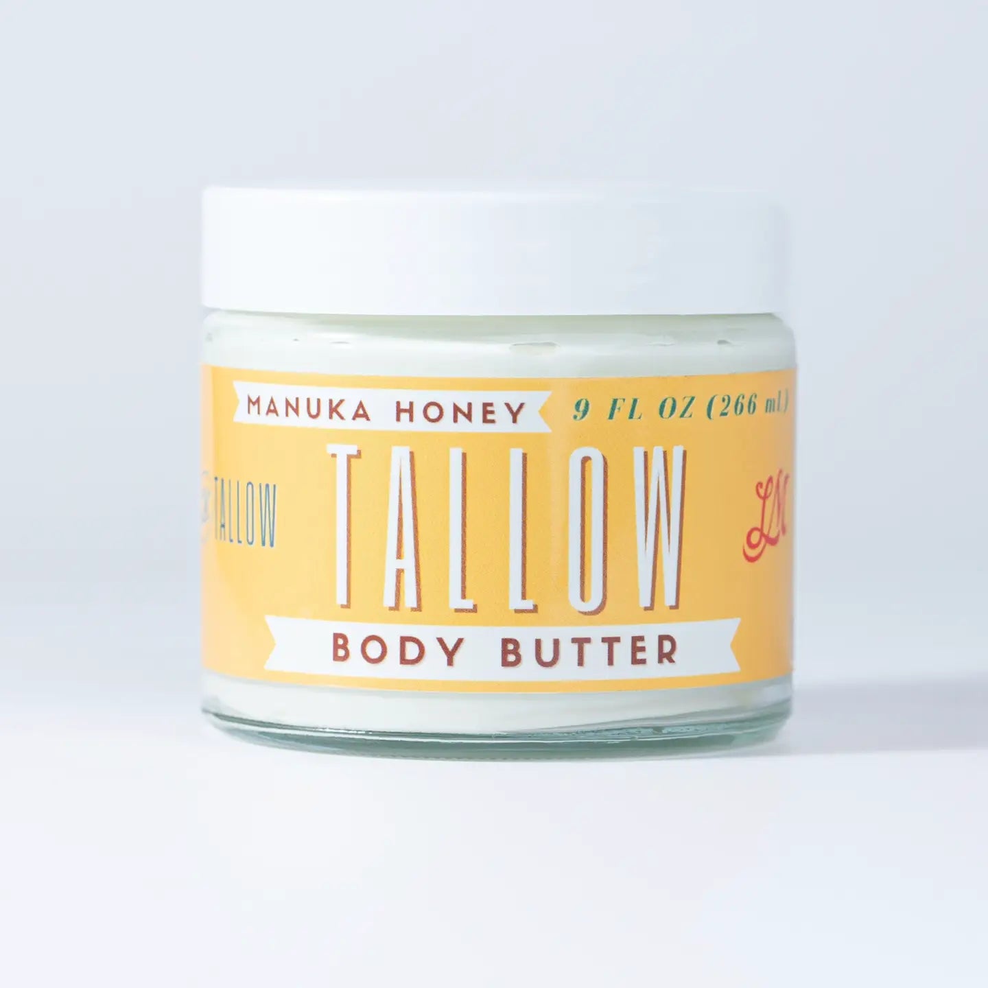 Lady May Tallow’s Manuka Honey & Rosehip Tallow Body Butter A rich, whipped blend of nutrient dense tallow, healing manuka honey, and rejuvenating rosehip oil crafted to deeply nourish, calm, and restore your skin.
